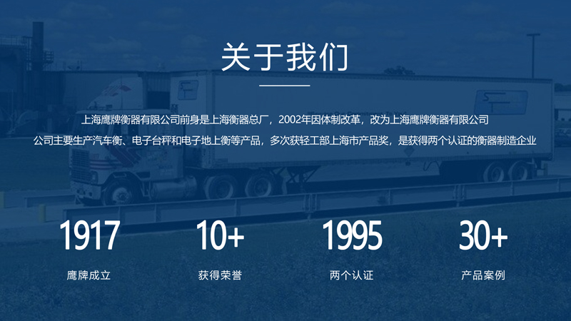 上海鷹牌衡器有限公司是上海衡器總廠轉(zhuǎn)制的企業(yè),前身是上海衡器總廠,創(chuàng)建于1917年,是地磅等衡器設(shè)計(jì)、制造廠家,主營電子地磅、電子秤以及地磅維修,2002年因體制改革,改為上海鷹牌衡器有限公司!